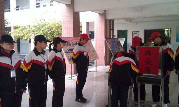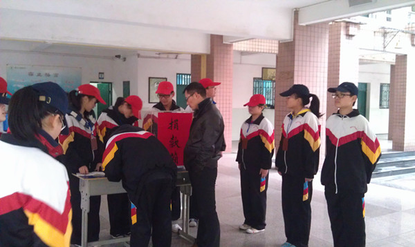學(xué)校將立即把籌集的善款送往教育局體衛(wèi)藝中心。下圖為各班代表捐款現(xiàn)場。