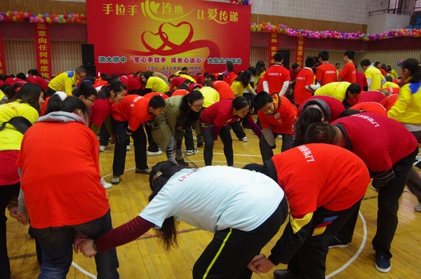 11月25日,湖北大學(xué)2號體育館內(nèi)充滿歡聲笑語,一場特別的體驗式教學(xué)“愛心手拉手”公益活動在這里隆重舉行。由武漢大學(xué)總裁項目部LP始創(chuàng)班策劃組織實施,我校100余名學(xué)生,100余名家長,20余名老師參加了本次活動;顒又荚谕ㄟ^科學(xué)的引導(dǎo),舒緩學(xué)生與家長的情緒,搭建起學(xué)校、學(xué)生、家庭之間的溝通平臺,從而使學(xué)生學(xué)會信任與感恩,幫助他們走好邁向青春的腳步。