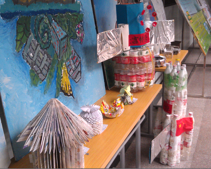 我校2012年文化體育藝術(shù)節(jié)系列活動之一——廢棄物再利用在我校成功展開。此次活動是在全校范圍內(nèi)組織開展以班集體為單位,以“環(huán)保校園、綠色行”及“大家展”為中心思想的藝術(shù)教育活動。藝術(shù)教研組憑借公平、公正、公開的原則,評選出優(yōu)秀獲獎班集體。