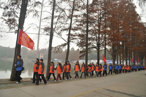 上午8點(diǎn)半,我校的全體黨員就已聚集在東湖梨園門口。何書記簡短的動員后,五個(gè)支部的黨員高舉著黨旗,排成整齊的隊(duì)伍向活動的第一站——九女墩出發(fā)。一路上還有好幾位黨員在認(rèn)真地背誦十八大知識競賽題。