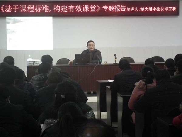 簽字儀式結(jié)束后,我校校長李玉新作題為《基于課程標(biāo)準(zhǔn) 構(gòu)建有效課堂》的專題報告。李校長從七個方面闡述了對主體內(nèi)化課堂教學(xué)模式和有效課堂的探索,他獨(dú)到的見解、生動幽默的語言深深感染了昭君中學(xué)老師們,他們紛紛表示受益匪淺。