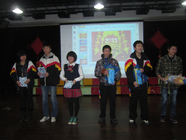 全體學(xué)生干部和老師近兩百人歡聚一堂,載歌載舞。整場聯(lián)歡會表演類的節(jié)目各團隊自編、自演,節(jié)目內(nèi)容豐富,形式新穎:優(yōu)美動聽的歌曲演唱、熱情絢麗的現(xiàn)代舞。聯(lián)歡活動中間還穿插了各種扣人心弦、捧腹大笑的游戲環(huán)節(jié),現(xiàn)場氣氛高潮迭起,掌聲不斷。各部門同學(xué)在歡樂之余亦增進了彼此間的交流。最后的抽獎環(huán)節(jié),產(chǎn)生了11名幸運的同學(xué),校團委為他們送上了精美的禮品。最后在同學(xué)們的歡笑聲中聯(lián)歡活動圓滿落幕。