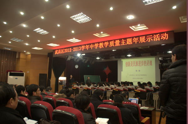 1月15日,武昌區(qū)2012-2013學年高中教學質量主題年高中展示活動在我校報告廳成功舉行。本次活動由區(qū)教育局中教科、教研培訓中心聯(lián)合主辦,武漢市教育局基教處副處長朱俊、武昌區(qū)教育局黨委書記許惠根、局長王興文、副局長徐赤勇、陳芳、譚藝琴、紀委書記王才建、區(qū)中教科長、教研培訓中心等部門負責人、市區(qū)各學科教研員出席活動,全區(qū)高中校長、教導主任及各學科教研組長200余人參加活動。