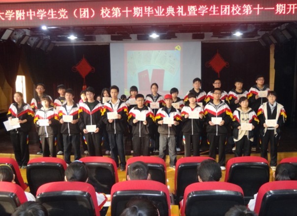 3月19日下午,在二樓報告廳舉行的湖大附中學生黨(團)校第十期畢業(yè)典禮暨學生團校第十一期開學典禮上,第十期黨校學員共51名,44人領(lǐng)到結(jié)業(yè)證書,其中10人被評為優(yōu)秀學員;團校學員共122人,104人領(lǐng)到結(jié)業(yè)證書,其中22人被評為優(yōu)秀學員。被表彰的32名優(yōu)秀學員,是經(jīng)黨團校對出勤、學習表現(xiàn)、作業(yè)完成以及課外實踐活動等方面進行綜合考評后,從參加學習的近兩百名學員中推薦出來的。