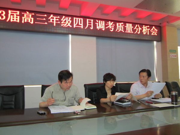 2013年5月4日下午,我校2013屆高三年級在二樓會議室召開了以“寧靜專注,梳理落實,盯準(zhǔn)目標(biāo),再創(chuàng)輝煌”為主題的四月調(diào)考質(zhì)量分析會。學(xué)校中高考領(lǐng)導(dǎo)小組全體領(lǐng)導(dǎo)和高三全體教師參加了會議。會議由副校長朱寧主持。
