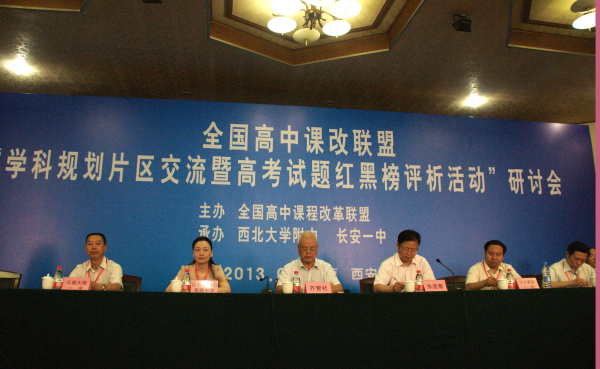 研討會(huì)開(kāi)幕式由西北大學(xué)附屬中學(xué)楊曉云校長(zhǎng)主持,陜西省教育廳基教二處處長(zhǎng)、陜西省教研所所長(zhǎng)蒞臨現(xiàn)場(chǎng)并講話。隨后,在九個(gè)分會(huì)場(chǎng)分學(xué)科進(jìn)行了學(xué)科發(fā)展規(guī)劃的片區(qū)交流活動(dòng)及2013年高考試題“紅黑榜”評(píng)析活動(dòng)。各校學(xué)科代表依次展示精心準(zhǔn)備的PPT文稿,解讀各校學(xué)科發(fā)展規(guī)劃;用專業(yè)的視角、客觀的立場(chǎng)向聯(lián)盟學(xué)校專家教師介紹本校參加的高考試題的特點(diǎn)、亮點(diǎn)(紅榜),也大膽提出試題中的不足或值得商榷的地方(黑榜),相互交流研究。各校教師還從試題評(píng)析中提出了對(duì)今后教學(xué)及高考備考方面的一些啟發(fā)與建議,相互學(xué)習(xí)借鑒。