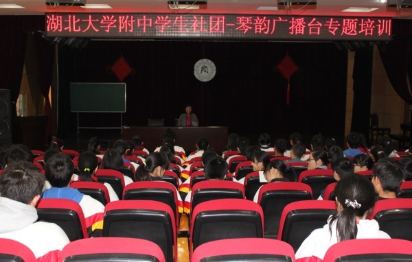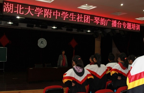 為了提高我校廣播臺播音員的整體素質(zhì),使同學(xué)們的播音水平進(jìn)一步提高,校團(tuán)委特邀湖北電視臺資深主持人馬伶教授,給大家?guī)砹艘惶镁实摹安ヒ襞c主持藝術(shù)”講座。
