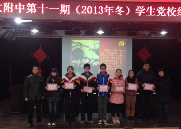 接著劉校長宣讀了《關(guān)于表彰第十一期學(xué)生黨校優(yōu)秀學(xué)員的決定》,何書記與劉校長共同為七名優(yōu)秀學(xué)員頒發(fā)了獎狀。隨后,學(xué)工處胡主任宣讀了《關(guān)于準(zhǔn)予歐陽瑞玲等35名學(xué)員結(jié)業(yè)的決定》。本期黨校共招收學(xué)員38名,經(jīng)考核有35名學(xué)員合格。最后,高二(8)班吳悔同學(xué)作為優(yōu)秀學(xué)員代表發(fā)言。