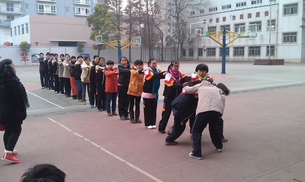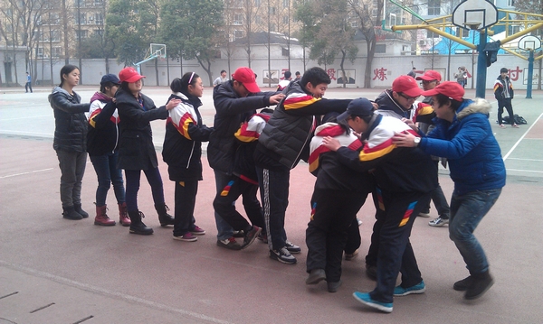 “蜈蚣翻身”游戲進(jìn)行中,同學(xué)們首先被隨機(jī)平均分成四個(gè)組,各組經(jīng)自我推薦產(chǎn)生一名隊(duì)長(zhǎng)。新的團(tuán)隊(duì)組建好后,在隊(duì)長(zhǎng)帶領(lǐng)下練習(xí)五分鐘,然后就開始了緊張的“蜈蚣翻身”的比賽。第二輪活動(dòng)中,從四個(gè)隊(duì)長(zhǎng)中抽簽決定留下兩名隊(duì)長(zhǎng),由隊(duì)長(zhǎng)依據(jù)隊(duì)員第一輪比賽中的表現(xiàn)挑選出20名成員,隊(duì)長(zhǎng)組織“長(zhǎng)蜈蚣”進(jìn)行五分鐘練習(xí)后,又開始了緊張的比賽。游戲過后大家還展開討論,總結(jié)游戲中的過程,經(jīng)驗(yàn),教訓(xùn),啟示等。