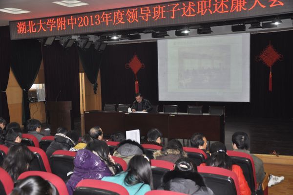 根據(jù)省委組織部、省高校工委關(guān)于2013年省管領(lǐng)導(dǎo)干部和領(lǐng)導(dǎo)班子年度考核的通知和高等院校黨風(fēng)廉政建設(shè)責(zé)任制考核的通知精神,1月19日,在學(xué)校二樓報告廳隆重召開了2013年度領(lǐng)導(dǎo)班子述職述廉大會,湖北大學(xué)組織部副部長焦新曦、學(xué)校領(lǐng)導(dǎo)、全校教職工參加會議。