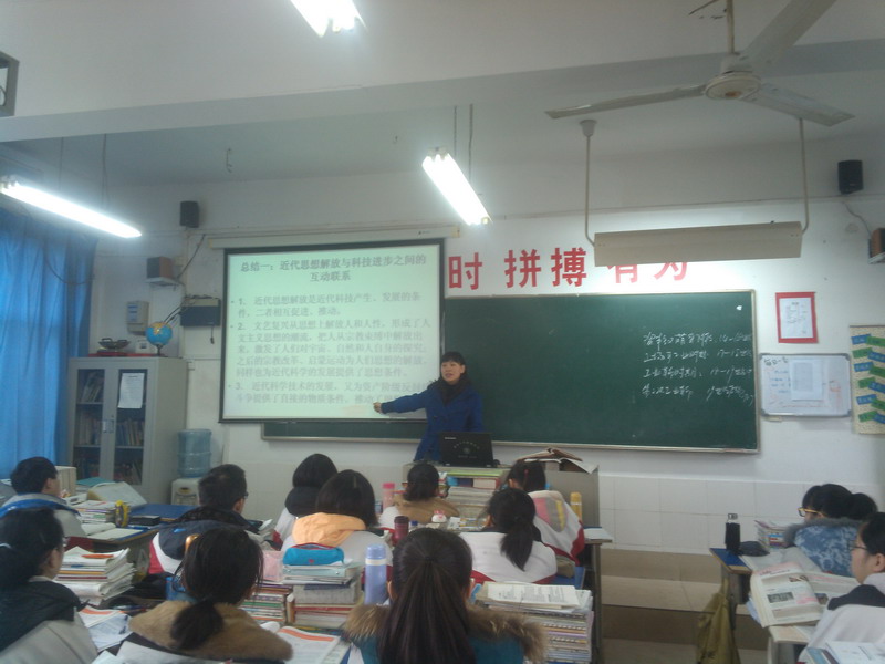 上午第二、三節(jié)課,教研員及老師們分別在高三(6)、(7)、(9)聽(tīng)了我校地理、政治和歷史課。在高三(9)班的教室里,歷史周小琴老師的富有創(chuàng)意的提問(wèn)讓學(xué)生充分參與到課堂上來(lái),發(fā)揮了學(xué)生的積極性。 、