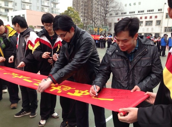 活動現(xiàn)場,高三年級全體教師和莘莘學(xué)子們在國旗下莊嚴(yán)宣誓,振作士氣,表達(dá)決心,響徹云霄的口號載著信心和夢想為即將到來的高考吹響了號角。