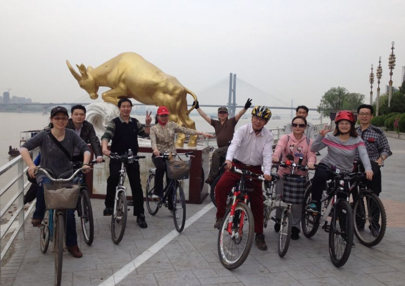 3月3日,陽光明媚,湖大附中教職工自行車協(xié)會首次校外活動騎往武昌江灘。該協(xié)會有一個特別的名字“騎士協(xié)會”。在會長陳志輝的帶領下,沿著老騎手葉章維老師設計的路線,一行十一人從學校出發(fā),浩浩蕩蕩騎往武昌江灘公園。車隊穿行在柳枝吹拂的江邊小路上,進入天然氧吧,老師們個個心曠神怡,神清氣爽。校長李玉新身先士卒,一路上講解著騎行知識,校助魏偉前后照應著隊員。