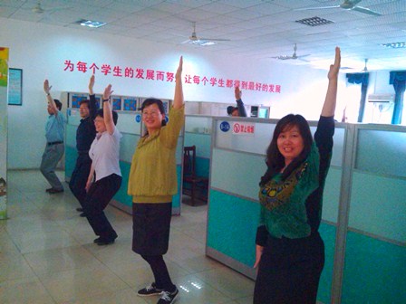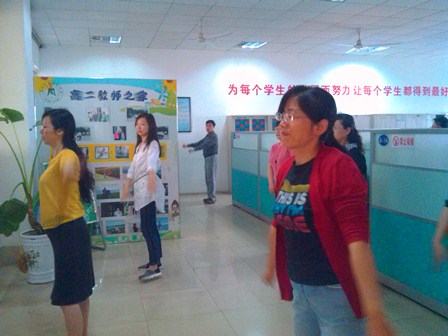 為豐富課余文化生活,營造教師間團(tuán)結(jié)、奮進(jìn)、求實(shí)、創(chuàng)新的良好氛圍,增強(qiáng)教師的身體素質(zhì)和幸福指數(shù),全體高二年級老師積極參與學(xué)校倡導(dǎo)的 “每天健身一小時,健康生活一輩子”的工間操訓(xùn)練活動。從5月初開始,專門在董輝和陳智老師的帶領(lǐng)下于學(xué)生大課間時間訓(xùn)練第九套廣播體操,在活動中不僅鍛煉了身體還增強(qiáng)了教師團(tuán)隊(duì)協(xié)作精神,展示了高二年級充滿活力、充滿激情、和諧發(fā)展的年級氛圍!