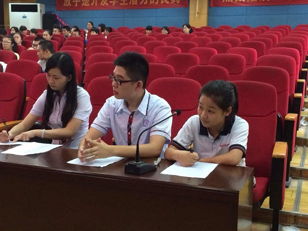 9月2日,湖大附中舉行了三場(chǎng)學(xué)生會(huì)干部競(jìng)選面試會(huì);顒(dòng)由原校學(xué)生會(huì)主席高三(8)班的吳悔同學(xué)主持。整個(gè)競(jìng)選過(guò)程嚴(yán)格按照預(yù)定的議程進(jìn)行,校團(tuán)委書記張莉、初一年級(jí)主任章雄鋼、初二年級(jí)主任丁美芳、高一年級(jí)書記陳曉芳、高二年級(jí)書記王宇及原校團(tuán)委、學(xué)生會(huì)干部組成競(jìng)選考評(píng)小組,依據(jù)公平、公正、公開的原則擇優(yōu)選聘。