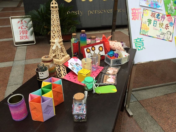 經(jīng)過學工處、校團委及各年級書記評委老師們的評選,三十個作品被選為最“有創(chuàng)意 有心意”禮物,并在教師節(jié)當天展出在學校小廣場上。