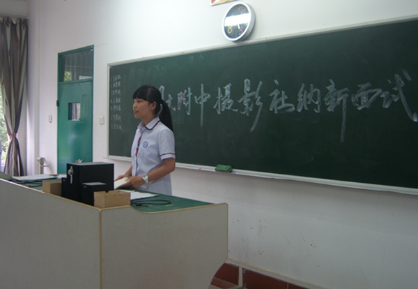 經(jīng)過(guò)開(kāi)學(xué)一周小廣場(chǎng)納新海報(bào)的宣傳,下午第四節(jié)課300多名高一新生學(xué)生帶著報(bào)名表,參加各社團(tuán)指導(dǎo)老師組織的面試考核。各社團(tuán)納新方式豐富多彩,如:報(bào)名廣播臺(tái)的同學(xué)須朗誦一段詩(shī)歌和即興演講一段話,報(bào)名參加合唱團(tuán)的同學(xué)須唱一首歌曲,報(bào)名參加禮儀社的同學(xué)須站立來(lái)一段自我介紹..... 同學(xué)們都在考核中充分展示了自己的才華與自信。在確定社員新成員后,現(xiàn)場(chǎng)還進(jìn)行了社長(zhǎng)、副社長(zhǎng)的自薦和選拔。