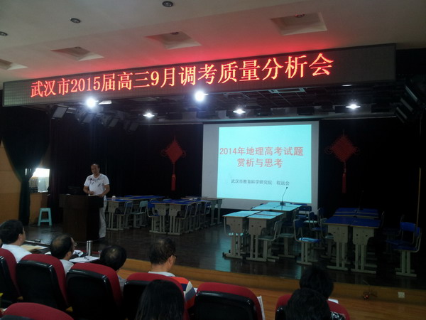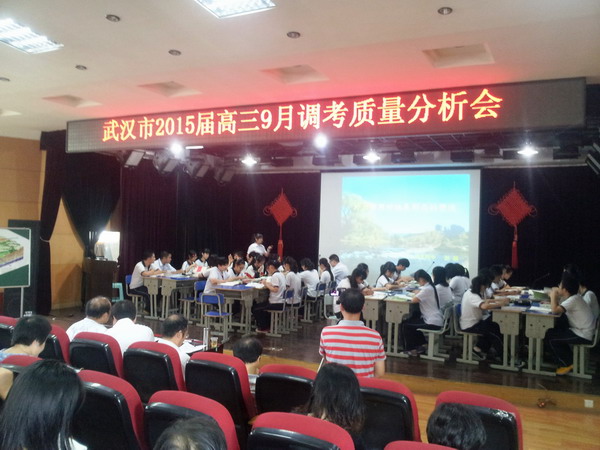 武漢市硚口區(qū)11中伍濤老師作了題為《武漢市9月調(diào)考試題解析》的專題報告;我校鄭龍松老師作了關(guān)于《武昌區(qū)和湖大附中高三9月調(diào)考的質(zhì)量分析報告》,并介紹了我校高三一輪復(fù)習(xí)的一些做法。