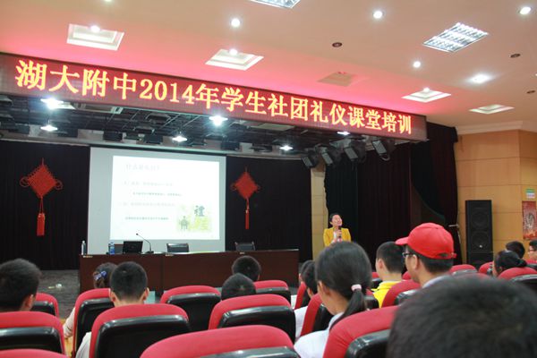 為豐富我校社團活動,提升學(xué)生的文明素養(yǎng),10月16日下午,湖北省禮儀協(xié)會資深禮儀培訓(xùn)師莫小金女士應(yīng)邀前來我校開設(shè)題為《知禮、懂禮、行禮——我身邊的禮儀》的培訓(xùn),為全體禮儀社成員及非畢業(yè)年級學(xué)干、國旗班、廣播臺成員上了一堂精彩生動的禮儀講座。