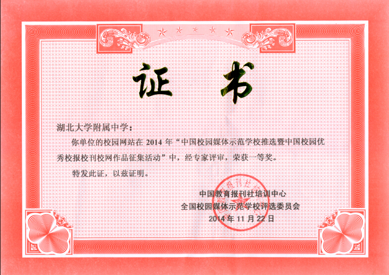 中國校園媒體建設示范學校評選活動由中國教育報刊社主辦,歷時一年,2000所學校參加評選。歷經(jīng)征選報名、展示交流、專家評議、網(wǎng)上公示四個階段,最終評選出“2014中國校園媒體建設百佳示范學校”等獎項。