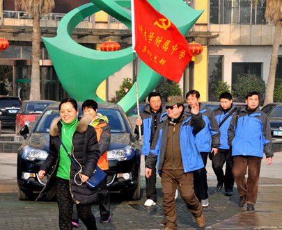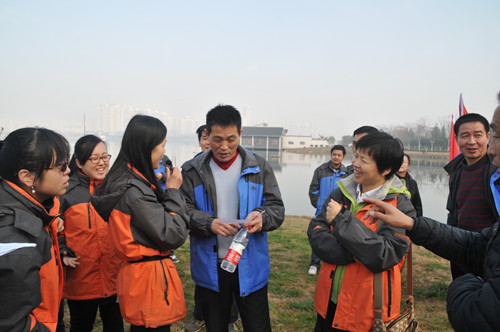 上午8點40分,在書記何鳳桃作了“健康、節(jié)儉、環(huán)保”為題的動員后,全校五個黨支部的黨員高舉黨旗,排著整齊的隊伍朝目的地——沙湖公園出發(fā)。一路上大家以“爭做文明武漢人”的標準規(guī)范自己的言行,積極做一些力所能及的事情。整個隊伍從沙湖公園管理處出發(fā)環(huán)繞沙湖行走。冬日的陽光映襯著一張張的笑臉,清涼的和風仿佛讓腳步變得更加輕快,大家同賞沙湖美景,共話文明新風,邊走邊聊,似乎沒有絲毫的累意。