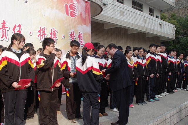 為了使學生樹立公民意識,增強社會責任感,激勵學生奮力拼搏,迎戰(zhàn)高考。2015年3月13日下午第三節(jié)課,我校在大操場召開以“感恩、責任、拼搏、夢想”為主題的2015屆高三成人宣誓儀式暨高考百日動員大會。校長李玉新,黨總支書記何鳳桃,副校長馬春華、朱寧,學工處主任胡勝民,團委書記張莉以及高三全體師生、家長代表共同參與了這次活動。