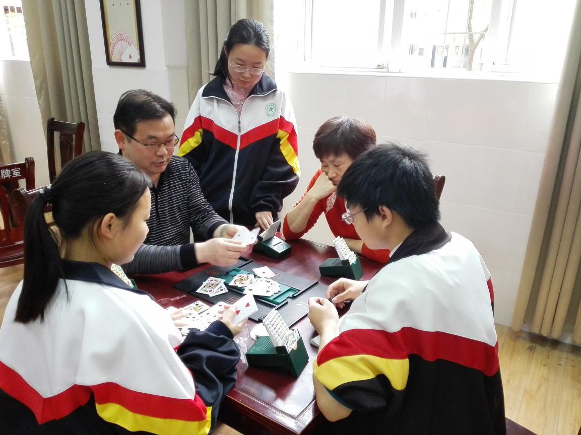 這種師生換位的橋牌活動方式,加強了師生之間關(guān)系,拉近了師生距離,提高了老師學習橋牌的興趣,也鼓舞了學生更好的學習橋牌。