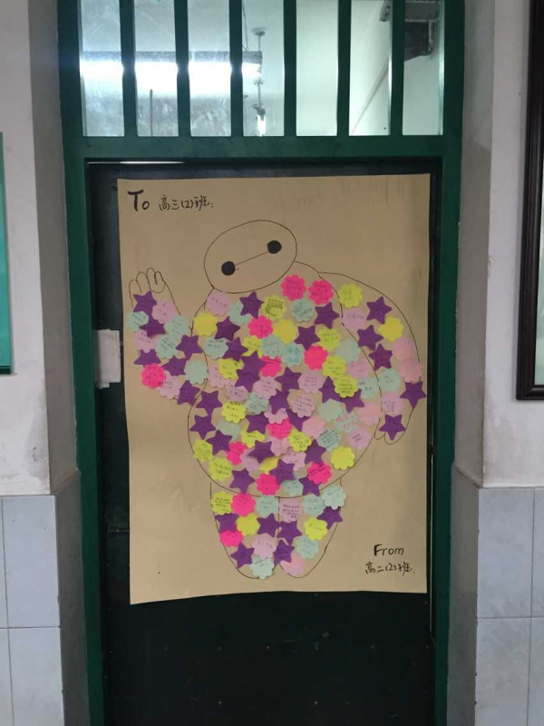 全體高二同學(xué)十分重視本次活動(dòng),都積極參與其中。高二年級(jí)的學(xué)生在各種不同顏色、不同形狀的的便簽紙上寫(xiě)滿對(duì)畢業(yè)班學(xué)長(zhǎng)的祝福話語(yǔ),并將之粘貼在高三各班的墻壁上,給高三畢業(yè)班增添了一道亮麗的風(fēng)景線。此外,5月22日下午的最后一次班會(huì)課上,高二年級(jí)9個(gè)班的同學(xué)們?cè)谒麄兊陌鄷?huì)課上宣讀了寫(xiě)給高三學(xué)長(zhǎng)學(xué)姐的信,送去最真摯的祝福。