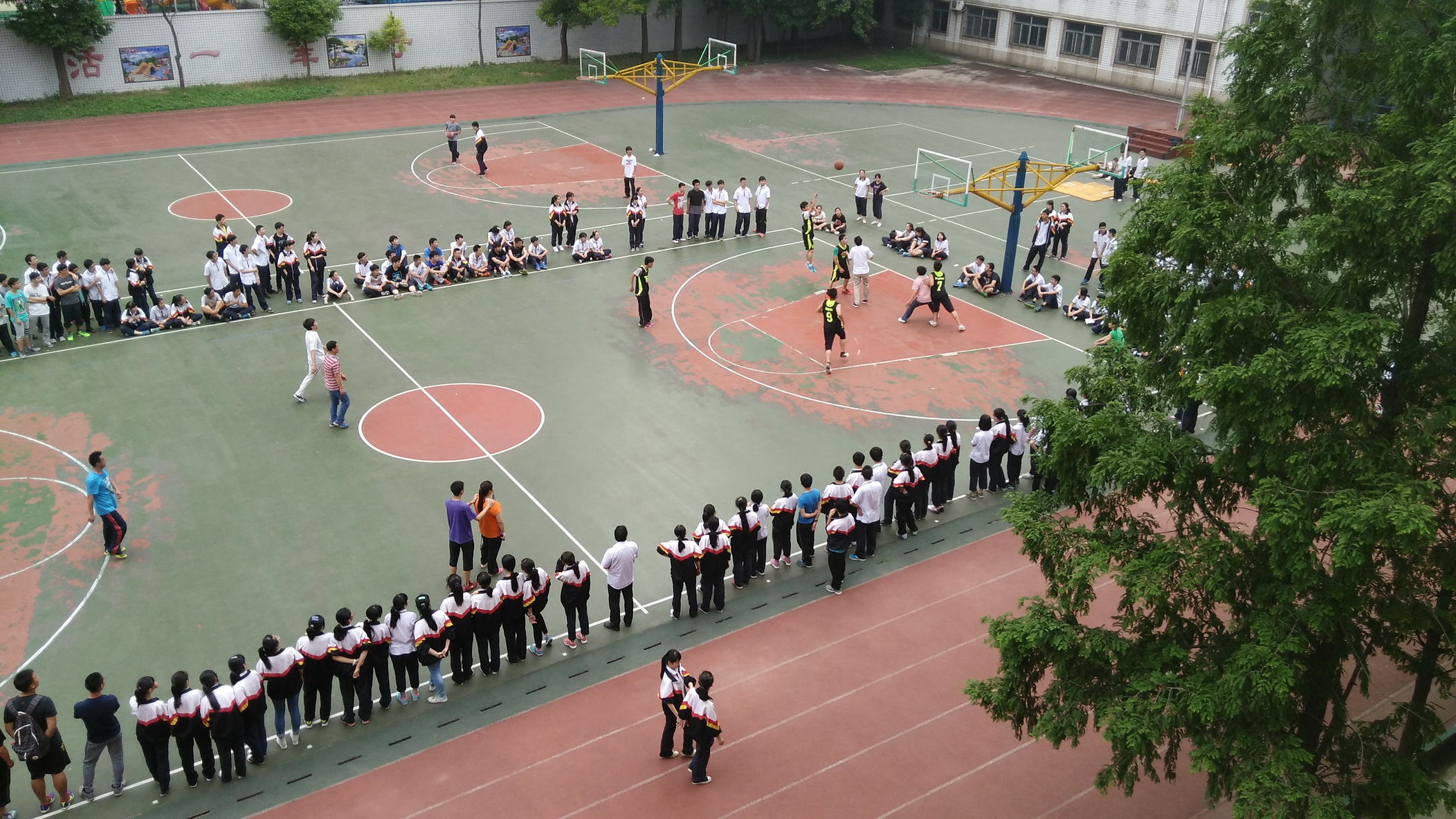 為了豐富學(xué)生課外活動(dòng),促進(jìn)教職工加強(qiáng)體育鍛煉、展示教職工風(fēng)采, 2015年6月9日下午高一年級(jí)課外活動(dòng)時(shí)間,在體育教師的組織下,高一年級(jí)學(xué)生籃球隊(duì)與教工籃球隊(duì)進(jìn)行了一場(chǎng)師生對(duì)抗賽,教師隊(duì)由張振杰、章雄剛、駱國(guó)鋒、秦儉、蔡有緣、胡勝民、范志猛等老師組成,體衛(wèi)藝張悅目老師為裁判。