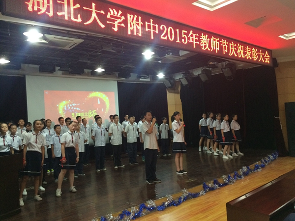 在學(xué)校舉行的2015年教師節(jié)慶祝表彰大會(huì)上,校團(tuán)委播放了精心制作的祝福視頻。來(lái)自全國(guó)各地2006屆到2015屆的畢業(yè)生們表達(dá)了對(duì)恩師誠(chéng)摯的祝福,“祝您節(jié)日快樂(lè),您辛苦了!”一句句感恩的祝福和問(wèn)候,在二樓報(bào)告廳內(nèi)久久回蕩。隨后在《唱給老師的歌》悠揚(yáng)的歌聲中,初二(1)班全體同學(xué)帶來(lái)的精彩舞蹈和深情朗誦都向可親可敬的老師們表達(dá)了無(wú)盡誠(chéng)摯的感激之情。