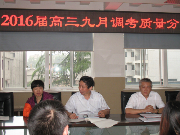 首先年級主任衛(wèi)月琴作九月調考質量分析報告。她在報告中對本屆在校在籍學生情況和本次考試各項數(shù)據(jù)進行分析,指出這次調考反映出的現(xiàn)階段存在的問題,以及明確了下階段工作努力的方向。