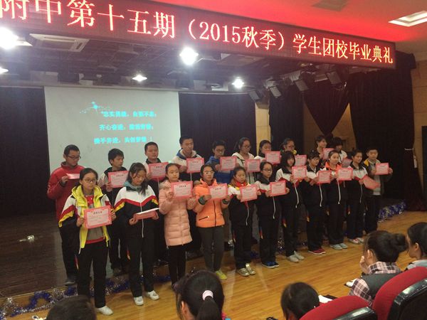 2015年12月2日,我校第十五期(2015秋季)學(xué)生團(tuán)校畢業(yè)典禮在二樓報(bào)告廳順利舉行。學(xué)工處主任胡勝民、校團(tuán)委書記張莉出席了典禮,本次活動由校團(tuán)委副書記王思憶主持。