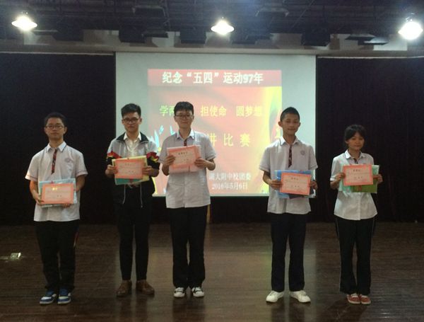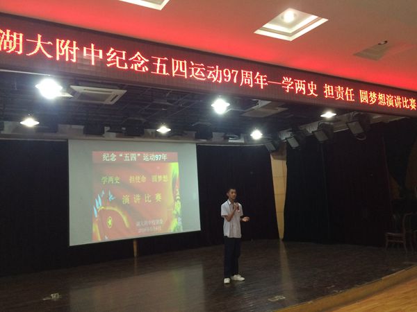 5月6日下午,我校舉行“紀念五四運動97周年‘ 學兩史 擔使命 圓夢想’演講比賽”,進過預賽共有18名選手進入決賽。