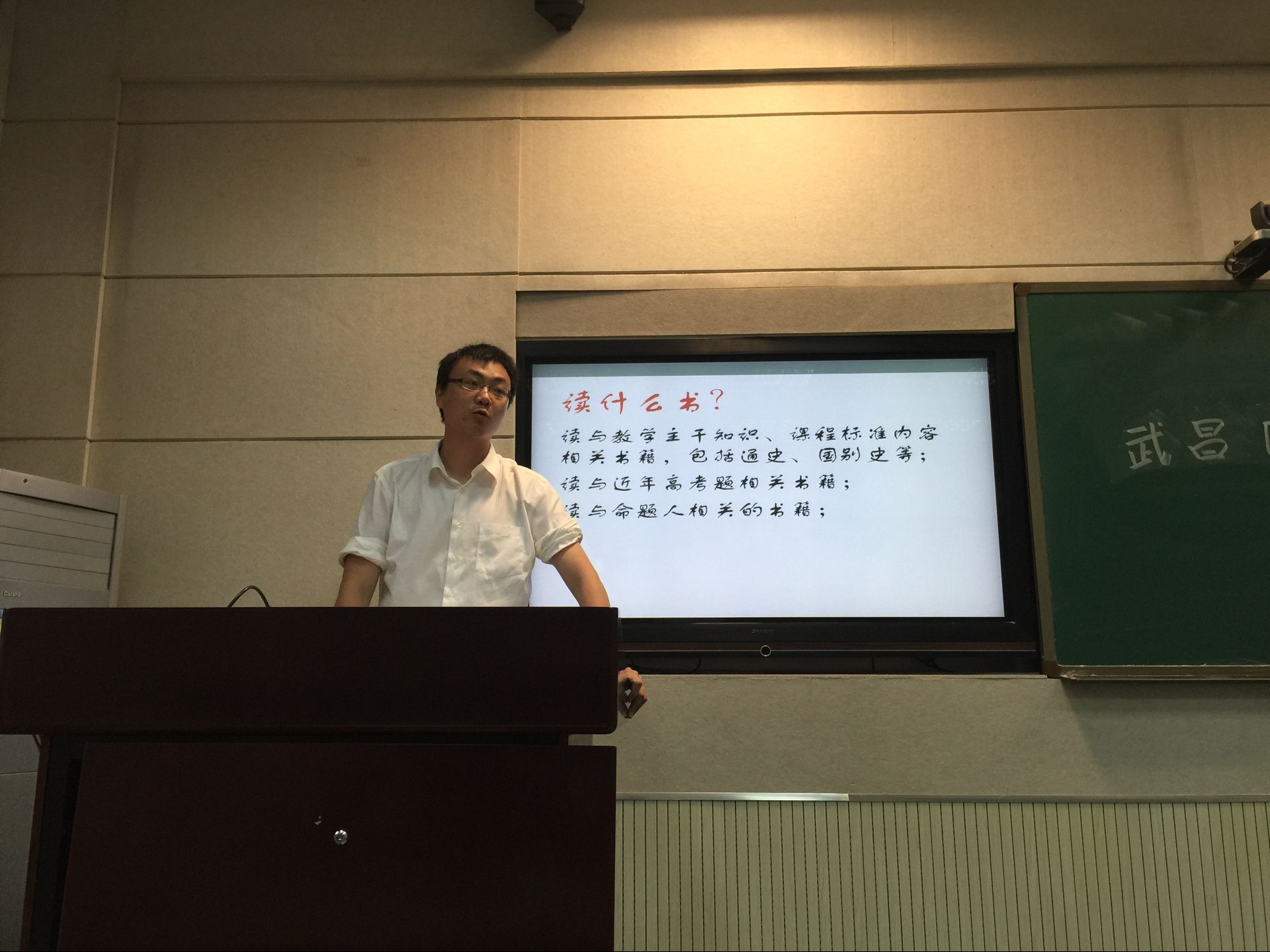 2016年5月27日上午9點(diǎn),武昌區(qū)高中歷史教師讀書交流活動在湖北大學(xué)附屬中學(xué)微格教室舉行,會議由教研員蒲利萍老師主持,來自十五中的何軍老師、水果湖中學(xué)的代江連老師和湖大附中的汪儒斌老師分別做了讀書心得的報(bào)告,來自武昌區(qū)近30余位老師參加了本次學(xué)習(xí)交流。