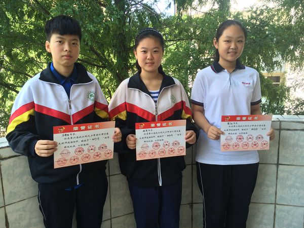 我校初二年級(jí)的黃芷禾、初三年級(jí)的蘇睿琪和高二年級(jí)的胡莉同學(xué)在“第六屆武漢現(xiàn)代少年好習(xí)慣形象大使”評(píng)選活動(dòng)中,被授予“現(xiàn)代少年”稱(chēng)號(hào)。