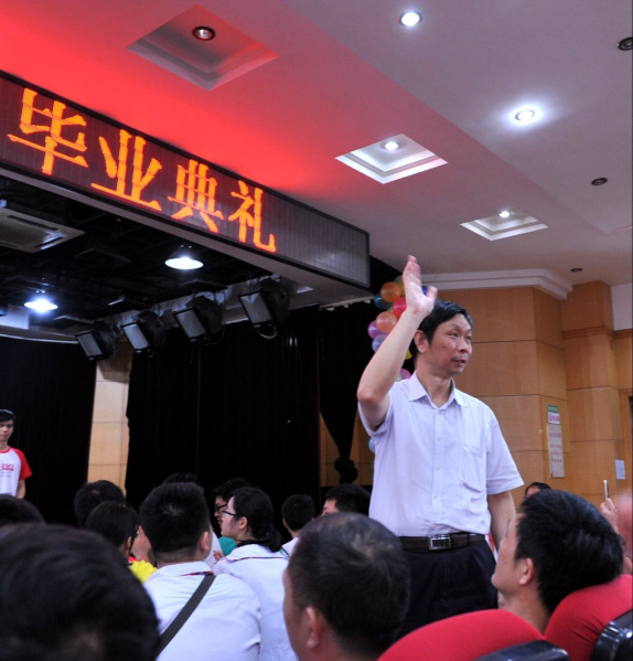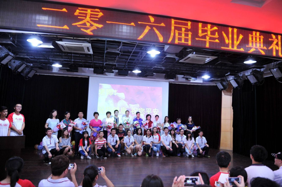 校長(zhǎng)黃朝炎、副校長(zhǎng)劉朝新、教務(wù)處主任黃炳香、學(xué)工處主任胡勝民以及2016屆高中畢業(yè)班全體師生出席典禮。隨著主持人宣布畢業(yè)典禮開始,在場(chǎng)的每個(gè)人在《義勇軍進(jìn)行曲》的激揚(yáng)節(jié)奏下高唱國(guó)歌,宣布自己從一個(gè)終點(diǎn)即將走向另一個(gè)起點(diǎn)。校長(zhǎng)黃朝炎長(zhǎng)以“放飛夢(mèng)想”為主題,向2016屆高三學(xué)子寄語,諄諄告誡他們做有理想有擔(dān)當(dāng)之人,真誠(chéng)祝福他們今后的學(xué)習(xí)工作一帆風(fēng)順。黃校長(zhǎng)的講話令同學(xué)們感動(dòng)不已,熱烈的掌聲久久不息。接著高三學(xué)生代表發(fā)言,高三各班學(xué)生代表為高三年級(jí)的老師獻(xiàn)花。最后在《放飛夢(mèng)想》的背景音樂聲中,學(xué)校領(lǐng)導(dǎo)及高三年級(jí)主任衛(wèi)月琴為畢業(yè)生頒發(fā)畢業(yè)證、畢業(yè)紀(jì)念冊(cè)。