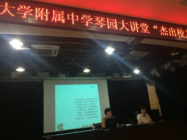 2016年9月26日,湖大附中琴園大講堂“杰出”校友論壇在二樓學(xué)術(shù)報(bào)告廳成功開(kāi)講。我校80屆校友,水果湖高級(jí)中學(xué)校長(zhǎng)楊建為應(yīng)邀回母校,作《教師的職業(yè)境界——我的教書經(jīng)歷和體會(huì)》專題報(bào)告。本次報(bào)告由校黨總支書記何鳳桃主持,全體教職工聆聽(tīng)了報(bào)告。