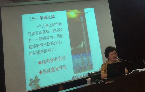 報(bào)告會(huì)上,楊建為校友與現(xiàn)場(chǎng)的老師們分享了她的求學(xué)經(jīng)歷、從教感悟。一個(gè)個(gè)生動(dòng)的故事她娓娓道來(lái),她告訴大家“教育的最高境界是教出讓老師敬仰的學(xué)生”,作為教師應(yīng)該面對(duì)孩子的心靈和生命懷有敬畏之心,應(yīng)該增強(qiáng)自己的人格魅力,讓自己成為“仁者之愛(ài)、智者之識(shí)、學(xué)者之風(fēng)、勇者之擔(dān)、隱者之淡、獨(dú)者之慎”的教師,從而讓學(xué)生“親其師信其道”。楊建為校長(zhǎng)的分享親切生動(dòng),老師們凝神傾聽(tīng),認(rèn)真記錄,不時(shí)露出會(huì)心的笑容。報(bào)告贏得了大家熱烈的掌聲。