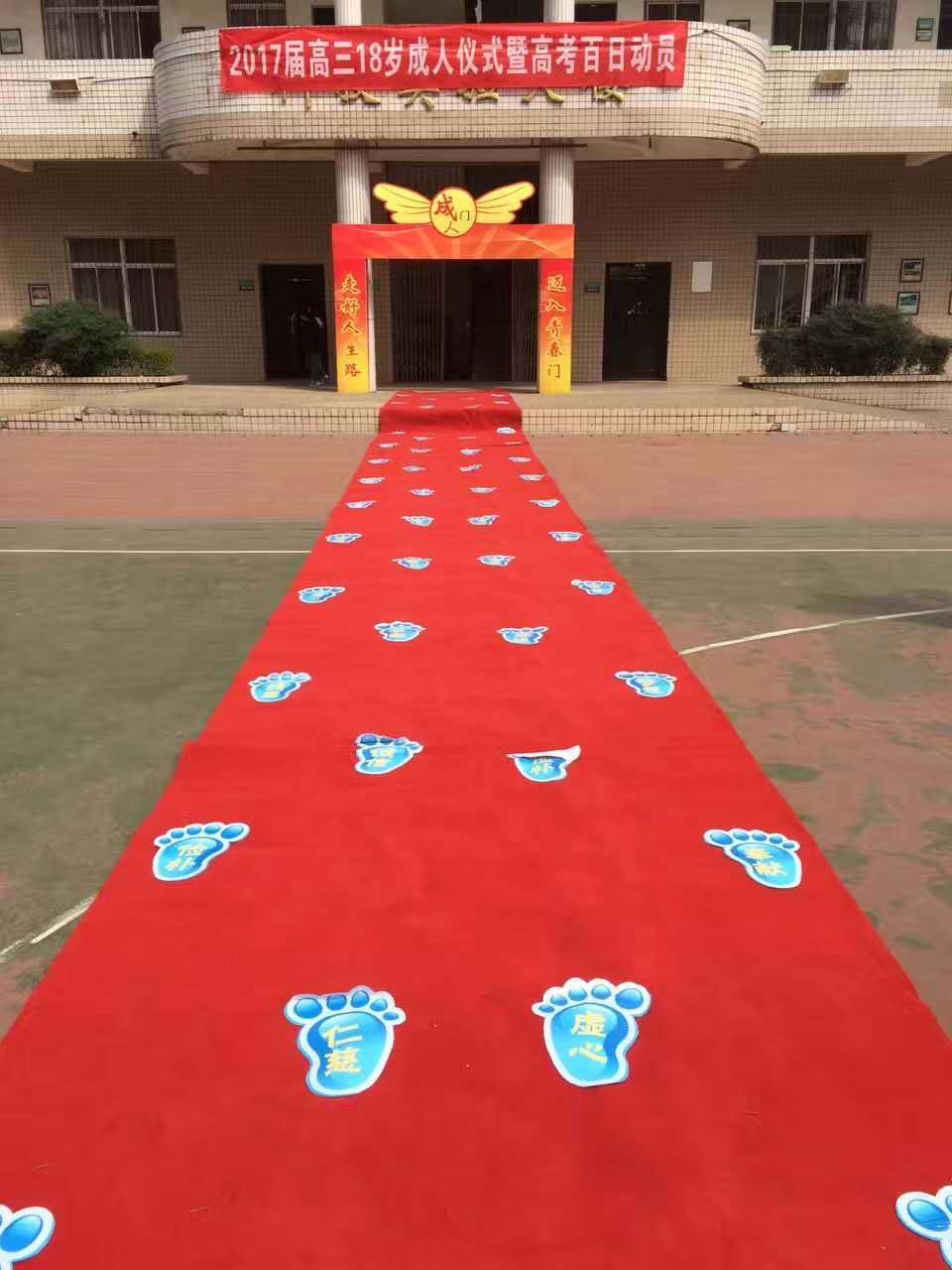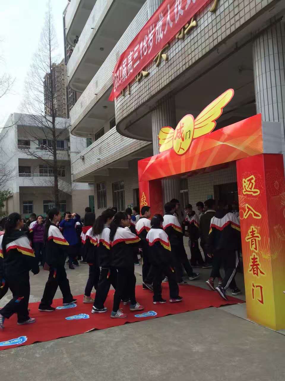 最后,同學(xué)們都以激昂的斗志踏上了寓意著人生之路的紅地毯,走過了象征著成人的大門,活動圓滿結(jié)束。