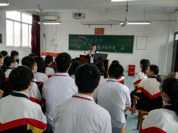 舞臺(tái)上同學(xué)們個(gè)個(gè)神采飛揚(yáng),精神抖擻,高一藝術(shù)生首先表演小合唱,然后是個(gè)人才藝展示。韓豐、夏逸宏兩位同學(xué)表演了鋼琴獨(dú)奏和個(gè)人獨(dú)唱;蔡沐赟同學(xué)側(cè)表演了長(zhǎng)管獨(dú)奏和個(gè)人獨(dú)唱,高一(1)班同學(xué)側(cè)表演了個(gè)人清唱。藝術(shù)生們優(yōu)美動(dòng)聽(tīng)的歌聲和樂(lè)曲回蕩在整個(gè)音樂(lè)教室,歡樂(lè)的情緒感染了在場(chǎng)每一個(gè)人。