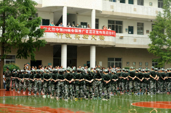 新學期伊始,我校四百多名新生迎來了中學生活的必修課——軍訓。