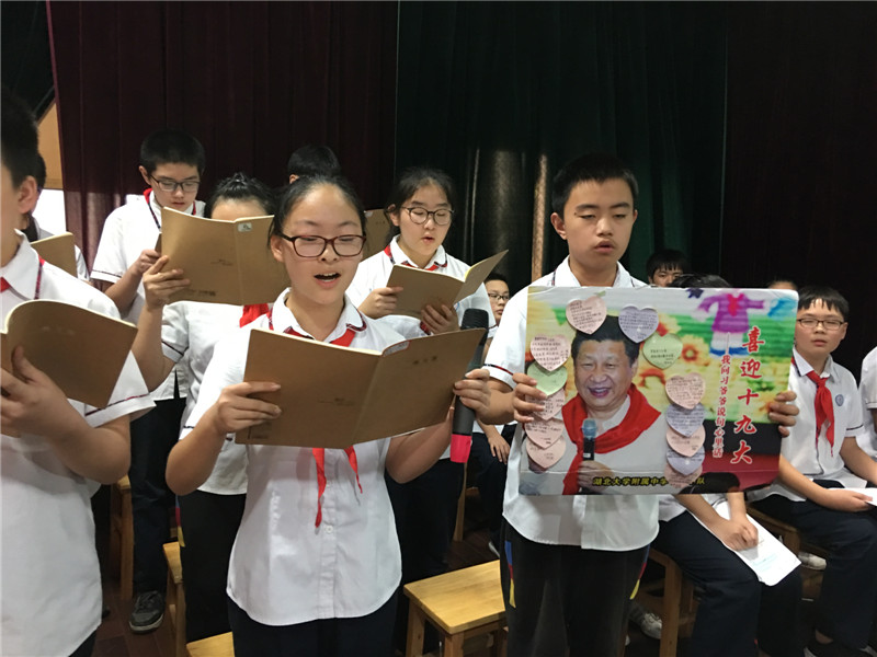 建隊儀式結(jié)束后,八2中隊展示了“喜迎十九大——我向習爺爺說句心里話”為主題的少先隊主題隊會。在活動中,少先隊員們用真誠而樸實的語言向習爺爺說句心里話,用詩朗誦、歌曲、書法、圖畫等形式表達了少年兒童對學習、生活和家鄉(xiāng)變化的真實感受,表達了為建設(shè)美好家鄉(xiāng)、美好祖國作好全面準備,對自己成長進步的期盼和希望,對祖國未來發(fā)展的祝福。