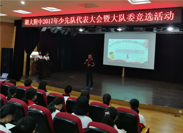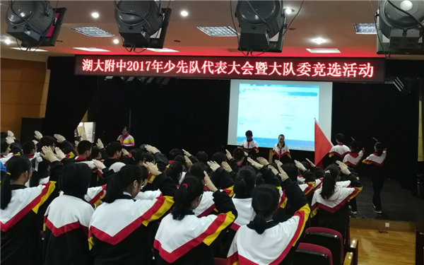 2017年10月13日,在建隊(duì)68周年紀(jì)念日的當(dāng)天,湖大附中大隊(duì)部舉行了“我是光榮的少先隊(duì)員”2017年少先隊(duì)代表大會(huì)暨大隊(duì)委競(jìng)選活動(dòng)。
