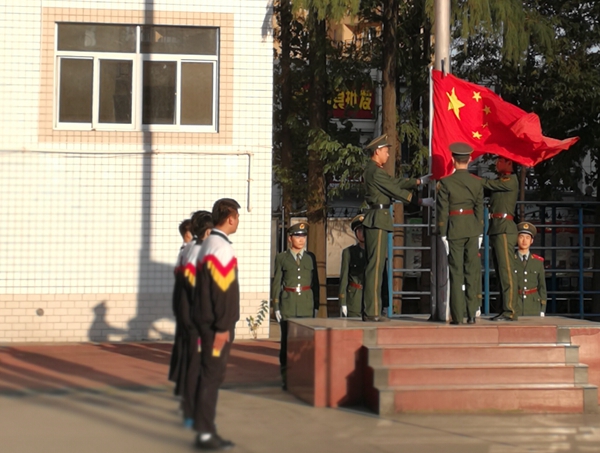 全體國旗班成員邁著整齊的步伐出旗,隨后原國旗班班長劉淞銘為新國旗班班長山文凱授旗。在全校師生熱烈的掌聲中,原國旗班中的七名高三成員光榮退役。 接著新一屆國旗班全體成員莊嚴宣誓:“熱愛國旗,認真執(zhí)行《國旗法》;遵守國旗班章程,嚴守學校紀律;我們將繼承并發(fā)揚國旗班精神,以火紅青春,譜寫國旗禮贊,用生命熱忱,捍衛(wèi)國旗尊嚴!卑殡S著雄壯的國歌,在全校師生的注目禮中,新一屆國旗班成員將五星紅旗高高升起。 相信,新一屆國旗班的同學們一定會牢記國旗班的精神,傳承國旗班的優(yōu)良傳統,盡展附中學子的風采!