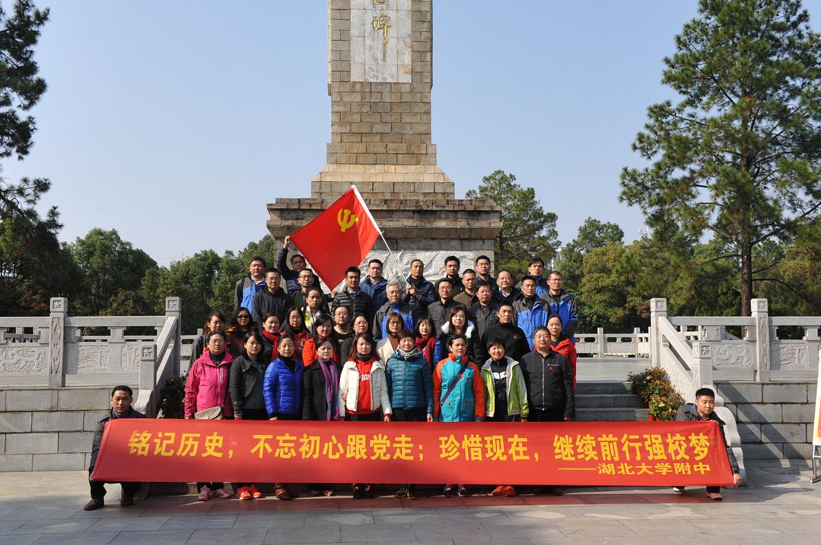 2017年11月18日,為全面準(zhǔn)確理解貫徹黨的十九大精神以及為進(jìn)一步推進(jìn)與麻城三中合作共建工作,湖大附中黨總支共44人以及麻城三中部分黨員前往麻城革命烈士陵園,開(kāi)展“秉承烈士志,攜手強(qiáng)校夢(mèng),不忘初心跟黨走”主題黨日活動(dòng),深切緬懷為黨為國(guó)家為人民舍生忘死、英勇獻(xiàn)身的革命先烈,接受革命傳統(tǒng)主義教育。