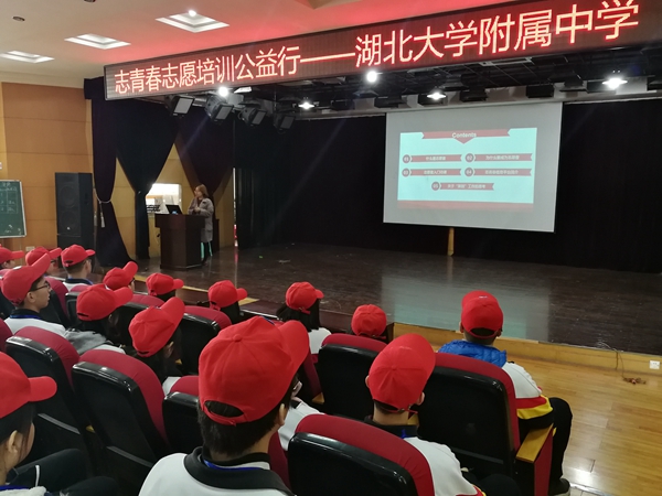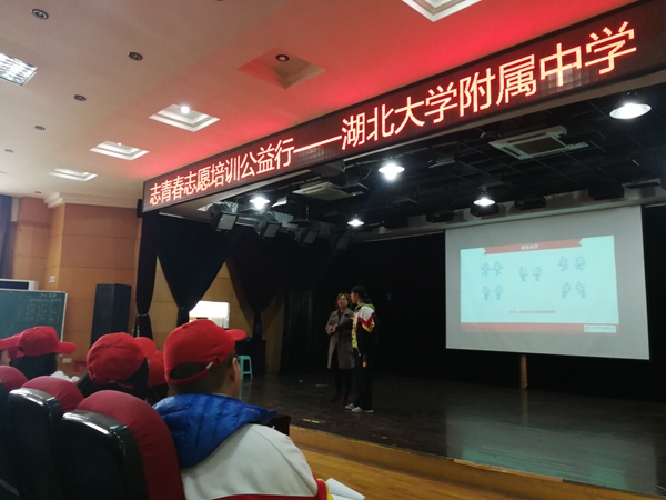 11月22日中午,我校2017年學(xué)生干部志愿服務(wù)工作培訓(xùn)會(huì)暨武漢市志青春志愿培訓(xùn)公益行活動(dòng)在二樓報(bào)告廳順利舉行,此次培訓(xùn)會(huì)特別邀請(qǐng)了武漢市青年志愿者協(xié)會(huì)培訓(xùn)部龐國(guó)婧部長(zhǎng)為志愿者服務(wù)隊(duì)及熱心參與志愿服務(wù)工作的學(xué)生干部們開展志愿服務(wù)通識(shí)培訓(xùn),參加活動(dòng)的有校團(tuán)委、校學(xué)生會(huì)及年級(jí)學(xué)生會(huì)干部和各團(tuán)支部書記。
