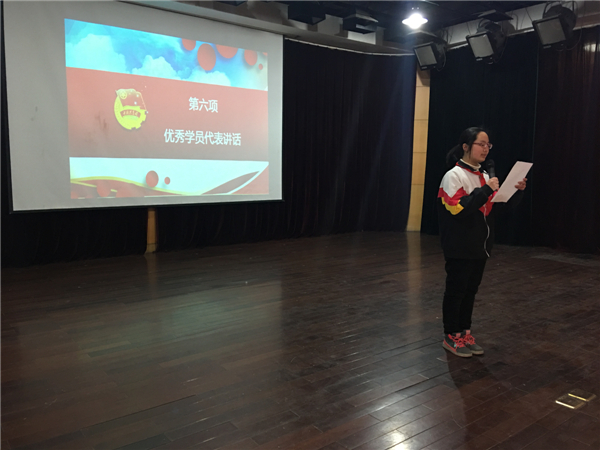 首先校團委書記張莉宣讀《關(guān)于確定十七期學生團校學員學業(yè)等次的決定》,并給各班代表頒發(fā)結(jié)業(yè)證書。隨后,胡主任宣讀《關(guān)于表彰第十七期團校優(yōu)秀學員的決定》,并給優(yōu)秀學員頒發(fā)榮譽證書。 優(yōu)秀學員代表趙芳發(fā)表講話,總結(jié)了團校學習的收獲和表達了對加入團組織的無限憧憬。最后,胡主任致辭,表達了對團校學員的殷切希望。