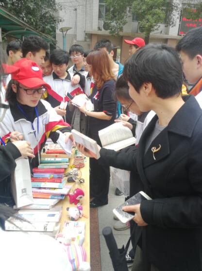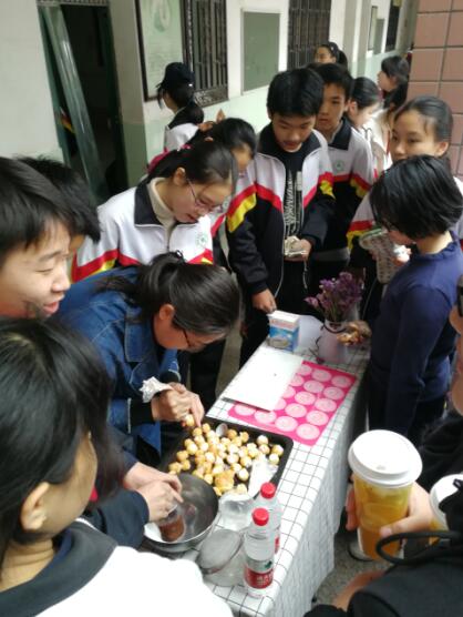本次活動進行了兩天,得到了全校師生的熱烈響應(yīng)。教師志愿者服務(wù)隊也熱情參與。帶來了自己精心制作的蛋糕、炸雞腿、水果茶及珍藏的書籍玩偶等。他們也站在攤前熱情吆喝,吸引了同學(xué)們爭相購買。