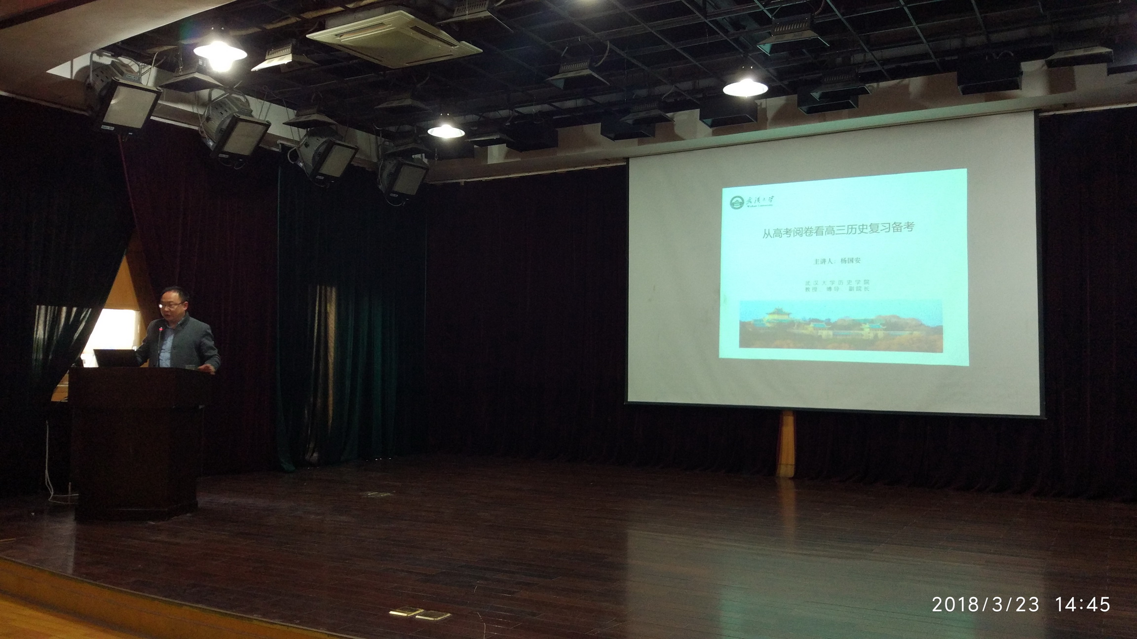 2018年3月23日下午兩點,武昌區(qū)高中歷史教研活動在我校二樓報告廳進(jìn)行,活動邀請了武漢大學(xué)歷史學(xué)院副院長、博士生導(dǎo)師楊國安教授做報告。武昌區(qū)各高中歷史教師和我校高二年級文科班及高一7班學(xué)生聆聽了報告。