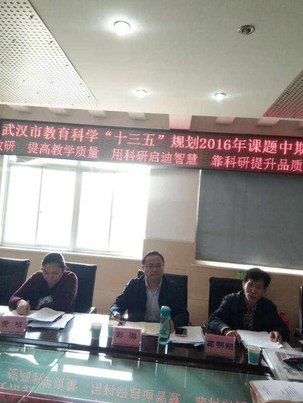 2018年3月27日,受武漢市教科規(guī)劃辦委托,武昌區(qū)教科規(guī)劃辦組織專家,對(duì)湖北大學(xué)附屬中學(xué)周鈺、王喜安、汪儒斌三位老師分別承擔(dān)的武漢市教育科學(xué)“十三五”規(guī)劃課題《高中生自主管理能力培養(yǎng)的策略研究》《高中地理少教多學(xué)模式深化研究》《高中歷史教學(xué)中史觀運(yùn)用能力培養(yǎng)的策略研究》進(jìn)行了中期檢查。